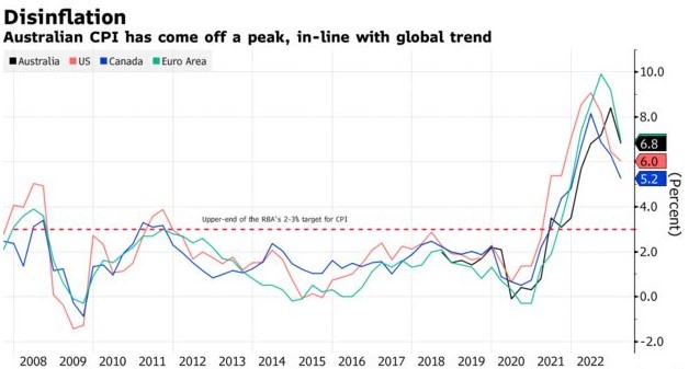 在通胀率从1月份的7.4%降至2月份的6.8%后,许多经济学家调整了利率预期,转向暂停加息。但该CPI仍然高于美国和加拿大的通胀水平,而顽固的通胀是德意志银行和高盛(321.53, -1.12, -0.35%)集团预测澳洲联储最终现金利率为4.1%的原因之一,这意味着还将加息两次25个基点。