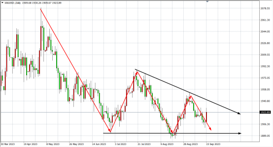 周五(9月15日)欧洲央行的决定引发了金价的反弹。欧洲央行将利率上调25个基点至历史新高,但有迹象表明这可能是当前紧缩周期中的最后一次加息,对黄金形成利好,推动其维持在1900美元上方,延续涨势。